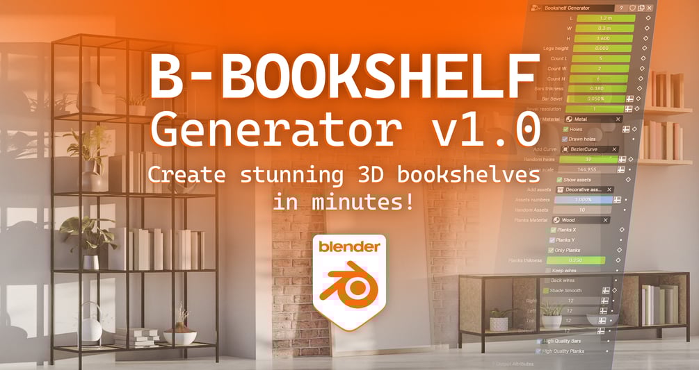 B-bookshelf generator is the ultimate solution for creating 3D bookshelves in blender. Whether you need bookshelves for your interior design projects, architectural visualization, game development, or just for fun.